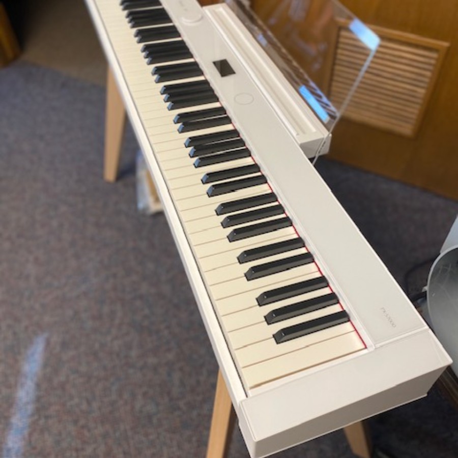 The PX-S7000 is a compact grand piano that looks every bit as good as it sounds and feels. Its modern design is both appealing and functional, with a beautiful and sturdy matching wooden stand and three fixed pedals. A digital grand piano is a perfect solution when an acoustic grand is impractical, especially one that delivers the sound and feel of a concert grand in a fraction of the space, the PX-S7000 is as much of a joy to see as it is to play. It also delivers the sound of three of the world's most legendary pianos (Hamburg, New York, and Berlin) as part of its collection of 400 Tones. As with any digital piano, an authentic feel is as important as sound quality. The Smart Hybrid Hammer Action keys take the PX-S7000's realism to a new level, featuring Spruce key construction, advanced counterweights, and new dampening materials. These keys are dynamic, whisper-quiet and satisfying to play. Designed to be beautiful from every angle, the PX-S7000 adds elegance, harmony, and modern style to any space. Unlike nearly any other digital piano, it can serve as a musical centerpiece rather than simply being placed near a wall. It can also be removed from its stand and played anywhere. Add 8 AA batteries, the optional SC-900 carrying bag, and the optional SP-34 three-pedal unit, and your PX-S7000 is ready to perform wherever your music takes you. The PX-S7000 won MMR's 2024 Dealer's Choice award for Home Digital Keyboard of the Year.